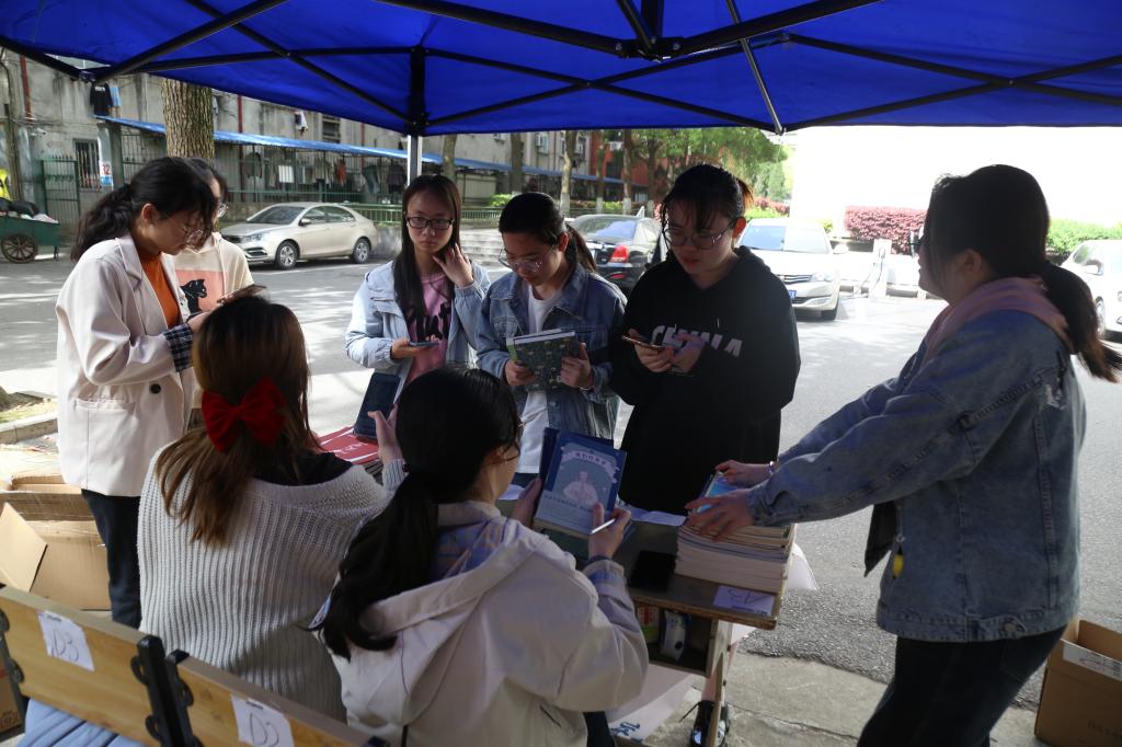 收集书册、登记信息、整理装箱……不一会儿,桌子上就堆满了各种课外书和杂志。设点处的忙碌吸引了路过的学生,他们纷纷停下询问情况,确认捐书种类的范围和活动截止时间。更有学生在自己募捐后,不断向身边的朋友介绍活动,鼓励他们也参与进来。