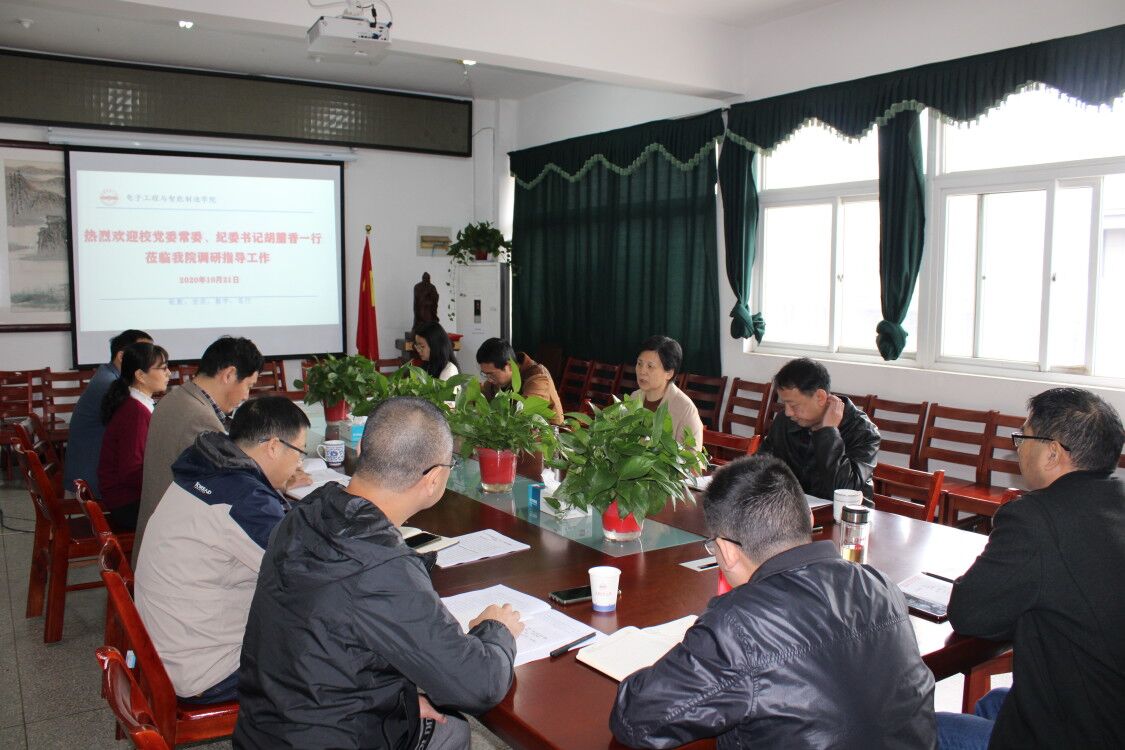 胡腊香首先就本次主题调研的背景、意义、目标等情况进行了介绍。在听取汇报后,她充分肯定了学院“十三五”期间所取得的成绩。她指出,电子工程与智能制造学院要写好收官之笔、做好谋篇之局,认真梳理“十三五”规划制定的目标任务,逐项检视指标完成情况,巩固深化已完成的指标,对未完成的任务要对照形势找问题、对照目标找差距、对照进度抓攻坚,确保“十三五”圆满收官。她强调,在学院“十四五”规划编制过程中,学院领导班子要加强政治学习,提高政治站位,认真学习习近平新时代中国特色社会主义思想,尤其是关于教育方面的重要论述,认真学习领会习近平总书记关于“十四五”规划编制工作的重要指示批示精神;要紧跟形势,精准研判,科学分析,吃透上情,摸清下情,做好充分调研论证,确保编制的科学性、合理性和前瞻性。