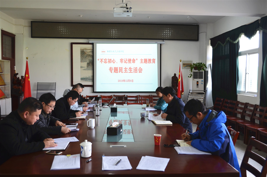 按照学校“不忘初心,牢记使命”主题教育的统一安排,12月9日下午,我院党委在学院会议室召开了“不忘初心、牢记使命”主题教育专题民主生活会。学院全体党委委员参加了会议,会议由学院党委书记江贵生主持。校督导组成员陈广到会指导。