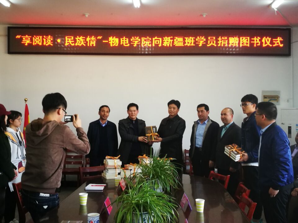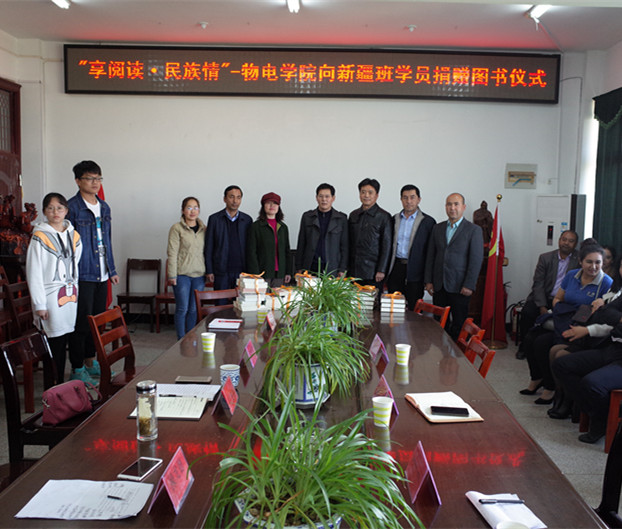 3月26日下午,以“享阅读·民族情”为主题的图书捐赠活动在我院会议室举办。继续教育学院院长张铭、学院党委副书记江贵生、新疆班学员以及物电学院学生代表参加了捐赠活动,活动由学院党政办公室主任操龙德主持。