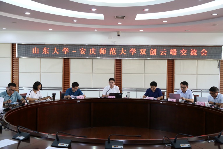 为扎实有效地推进大学生创新创业工作,深层次学习山东大学先进的创新创业理念与成果,9月28日下午,山东大学-安庆师范大学双创云端交流会于学校行政楼二楼会议室和山东大学软件园校区虚拟直播间同步举行。山东大学创新创业学院、安庆师范大学教务处(创新创业学院)、电子工程与智能制造学院有关领导、老师以及我校硕士生、本科生代表出席了本次交流会。交流会由电子工程与智能制造学院党委书记江贵生教授主持。