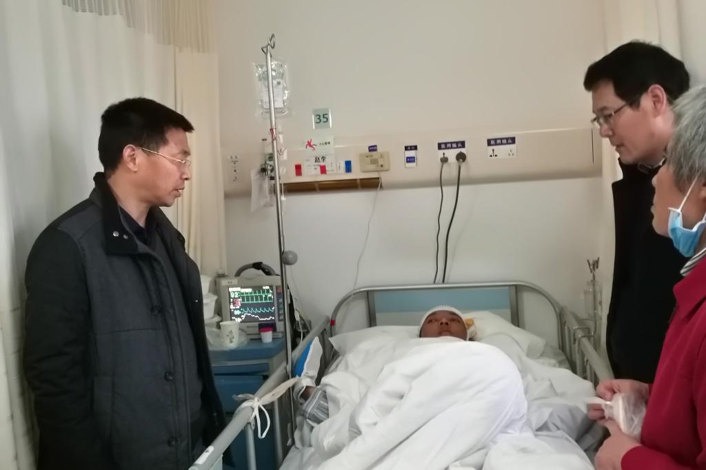 11月15日,副校长汪时珍教授在物理与电气工程学院负责同志的陪同下赴上海华山医院慰问赵李同学。