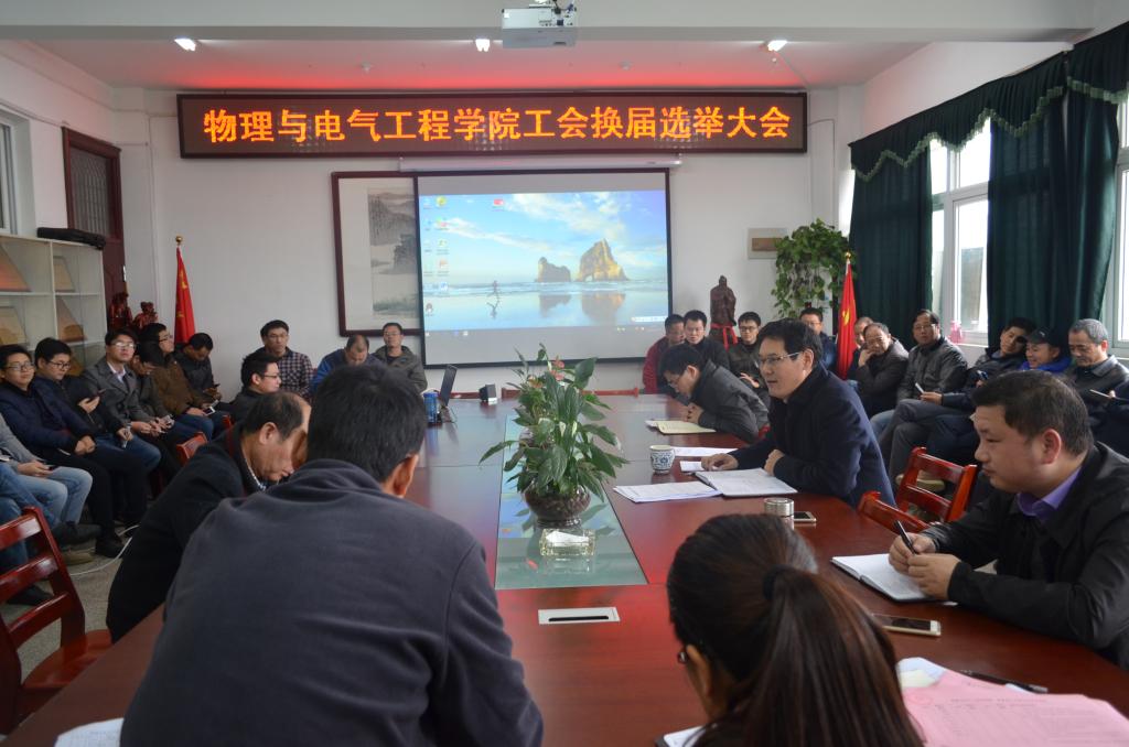 11月14日下午,物理与电气工程学院召开基层工会换届选举大会,学院全体工会会员参加会议,会议由学院党委书记江贵生主持。