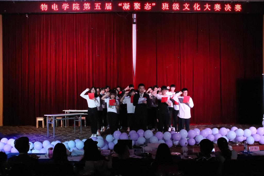 “青春校园,活力无限。”4月24日晚,物理与电气工程学院第五届“凝聚态”班级文化大赛决赛在图书馆东报告厅举行。科研处处长陈二祥、党委委员,党委秘书操龙德以及部分辅导员和教师代表参加此次活动。