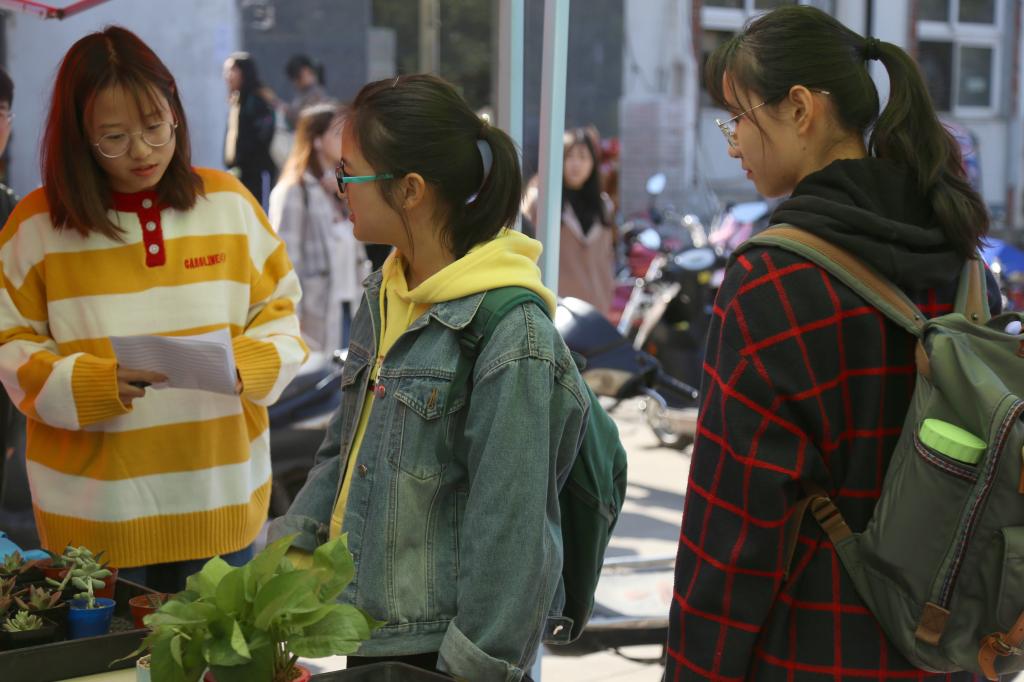 除了日常生活用品,义卖第三天新进的绿植小盆栽吸引了许多学生的目光。“这个是什么植物?”、“多肉多少钱一盆?”、“绿萝好养吗?”……伴随着密集的询问声,很快就售出了十几盆绿植,可谓是十分畅销。“绿萝,多肉和黄金草我各买了一盆,本来我就很喜欢花草,刚才听工作人员说卖完的钱是要捐给同学的,觉得挺有意义的,就想着多买一点。”数字媒体技术专业2018(1)班的薛建宇表示,绿色代表希望,自己也希望这位同学的情况能早点好起来。