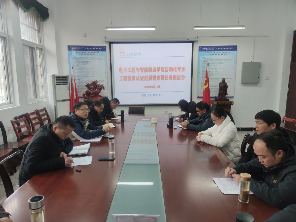 2月11日,我院召开自动化和光电信息科学与工程专业工程教育认证工作进展督查暨任务推进会,院党委书记夏云高,院长董甲东,院党委副书记、纪委书记高栋梁,副院长黄忠、章礼华出席了会议,自动化和光电信息科学与工程专业全体教师及教学办公室相关教师参加了会议。