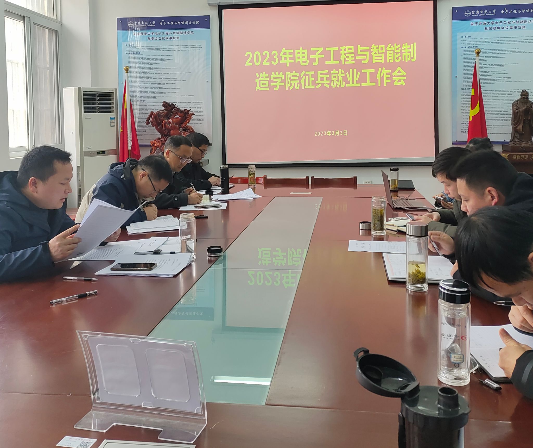 3月3日,我院召开2023届毕业生就业与征兵工作推进会。学院党政班子成员、各党支部书记、全体专兼职辅导员参加会议。