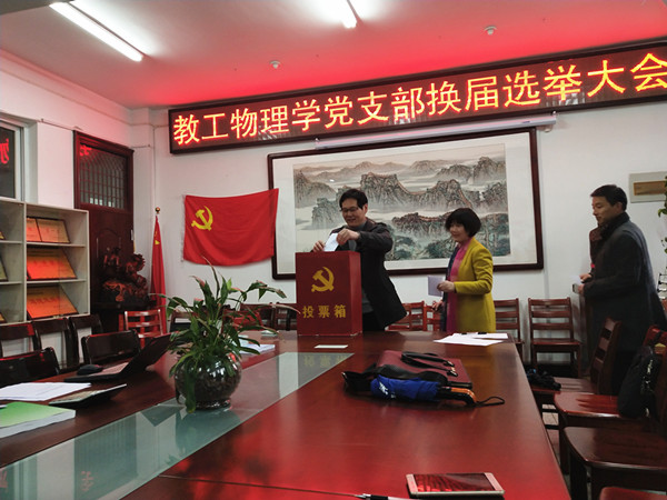 在换届选举会上,各党支部在党委班子成员的指导下,严格按照支部委员会选举程序,原各党支部书记对任期内的支部工作开展进行了总结报告,各党支部党员严格按照规定程序,依据《关于物理与电气工程学院党支部换届选举的工作方案》,本着“公平、公正、公开”原则,以无记名投票方式选举产生了新一届党支部委员会委员。会后,各党支部召开委员会会议,分别选举产生了各党支部书记、组织委员、宣传委员和纪检委员。