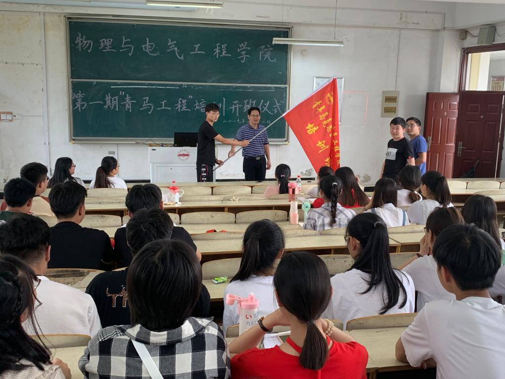 最后,学院党委书记江贵生为“青马班”授旗并发表讲话,他指出青马工程”作为大学生思想政治教育的有效途径,其核心目标就是坚定培养对象的理想信念,增强“四个自信”。他向参加第一期培训班的全体学员表示热烈祝贺,对本次青马培训提出了明确要求和期望。希望同学们能够深化理论学习,坚定理想信念,牢固树立正确的世界观、人生观、价值观,希望同学们能够理论付诸实践,增强干事本领。希望同学们在实践中自发培养独立性、判断性的思维模式和习惯,希望同学们能够牢记宗旨,密切联系同学,使团学组织和团学干部成为青年身边想得到、找得到、靠得住的重要力量。