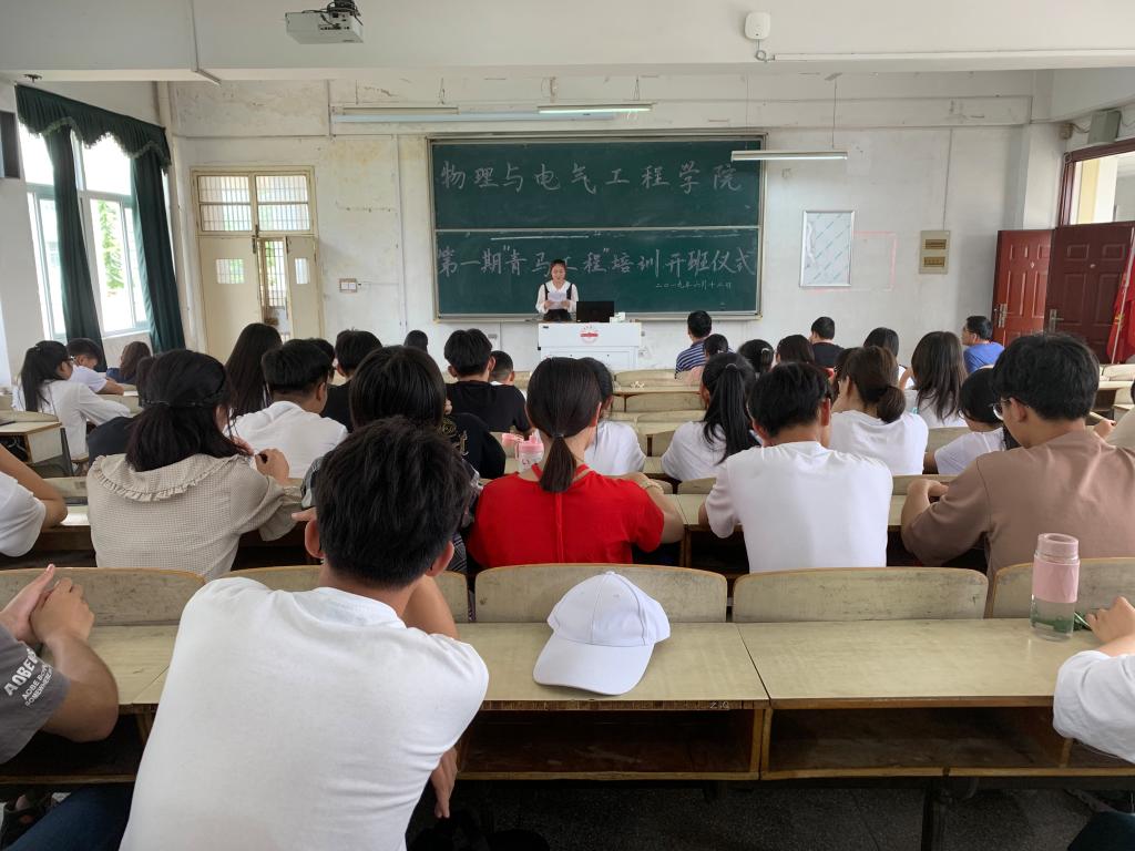 开班仪式在全体齐唱《国歌》中拉开序幕。院团学负责老师陈秋生宣读了物电学院第一期“青年马克思主义者培养工程”学生骨干名单和《物电学院青马班管理暂行办法》。电子信息科学与技术2018(1)张曼作为学员代表发言并做出庄严承诺。