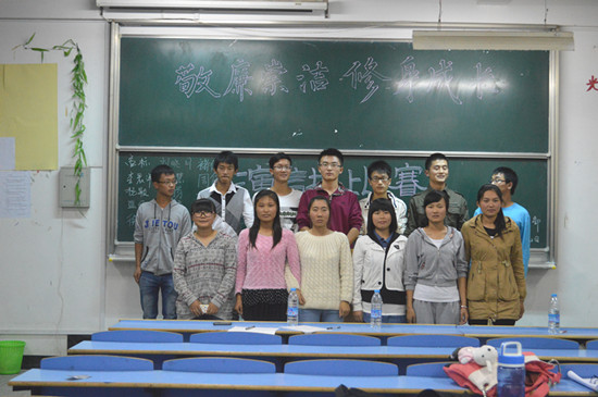 10月18日晚,我院团总支于文溯楼101教室举办了以“敬廉崇洁、修身成长”为主题的演讲比赛,我院学生会副主席曾喜梅、赵帅、宣传部部长刘兴坤及副部长莫言青担任此次比赛的评委。