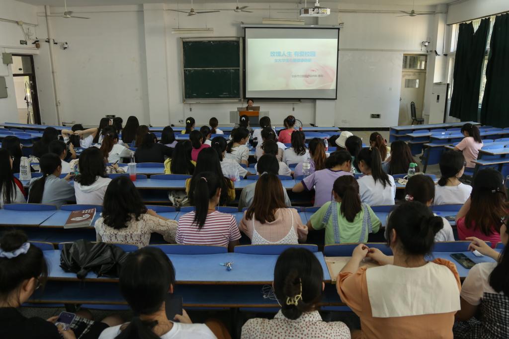 “你会在什么时候拿镜子照自己?”随着一个问题抛出,场下学生相互讨论、分享经历。6月23日下午,安庆市立医院主任医师曹莉应电子工程与智能制造学院邀请,在文溯楼108教室作“有爱校园,玫瑰人生”女大学生心理健康讲座。讲座由学院潘盼老师主持,近百名女学生聆听了本次讲座。