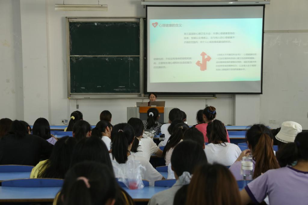 “什么是心理健康?”曹莉从心理健康的定义切入,讲述随着时代的发展,健康不再局限于身体,它的范围不断扩大。她介绍心理是在后天环境和社会生活实践中形成的,并强调了心理健康的重要性。随后,她从影响心理健康的因素、常见的心理问题及如何解决心理问题展开讲述。