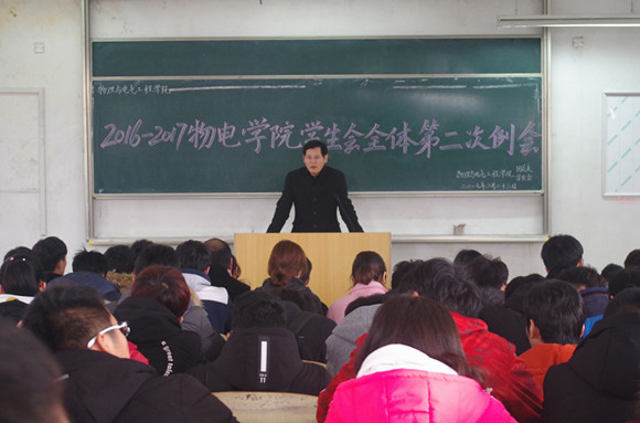 江贵生副书记对学生会的工作情况予以充分肯定,并对全体会员提出了希望和要求:一要发挥好示范引领作用,在个人的学习和言谈举止上,作为学生会干部,要身先士卒,在全院学生中起到模范带头作用;二要处理好学习和工作的关系,在锻炼实践能力的同时更要注重学习专业知识,不断提高自身的综合素质;三要发挥学生社团的服务作用,要结合我院的专业特点开展丰富多彩的课余活动;四要发挥好与外界联系的纽带作用,在与校内外团体或个人联合开展活动时,注重宣传物电学院的优良传统和特色活动。
