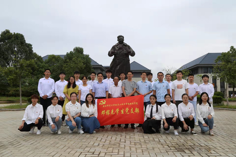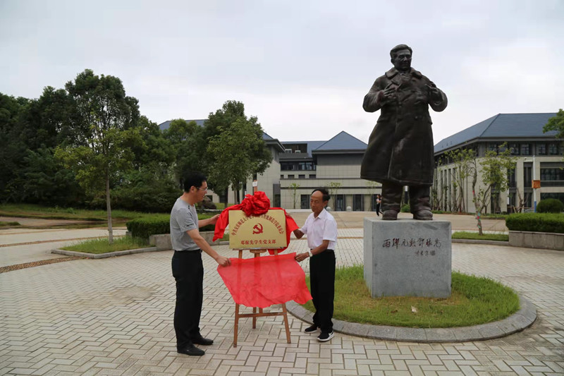 为将大学生党史学习教育推深做实,引导青年大学生在安庆当地名人精神中追寻到红色基因的源代码,让大学生党员成为弘扬红色文化和赓续红色基因的先锋力量,9月29日下午,我院党委在学校稼先楼旁邓稼先雕塑前举行了简短而又庄重的邓稼先学生党支部成立大会暨揭牌仪式。邓稼先旁侄邓敦华老先生应邀出席了活动,学院党委书记江贵生、副书记关德军、学生党支部书记及全体邓稼先学生党支部党员参加了揭牌仪式。仪式由党委副书记关德军主持。