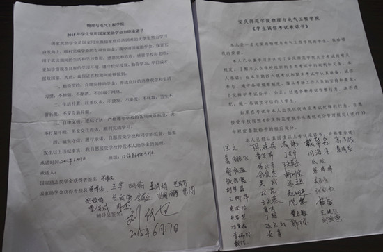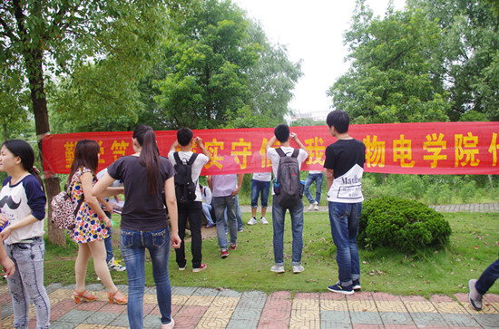 诚信签名宣传。期末考试到来之际,2015年6月18日,学院资助工作小组依托学生公寓党支部开展了以“勤学笃行 诚实守信 我为物电学院代言”为主题的诚信签名宣传活动。活动现场,学生公寓党支部就诚信考试和诚信还贷方面制作宣传海报和展板,解答助学贷款相关问题,发放助学贷款相关材料和《诚信调查问卷》,积极宣传诚信还贷,并进一步了解学生诚信情况。参与同学表示这种诚信宣传很有必要,也很励志,认为关于贷款和还贷流程的介绍,很好解答了他们的疑问。