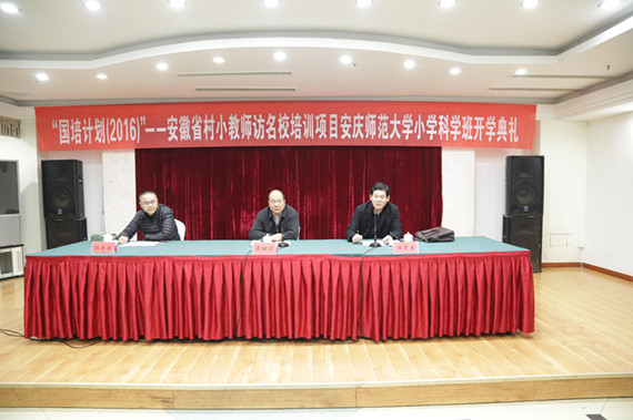 近日,“国培计划”(2016)”小学科学短期培训项目开学典礼在皖源国际大酒店隆重举行。学院党总支书记吴昭方、副院长江巨浪、江贵生、培训班班主任吴兆旺、张平伟老师以及参加本期培训的国培学员参加开学典礼。开学典礼由江贵生副院长主持。