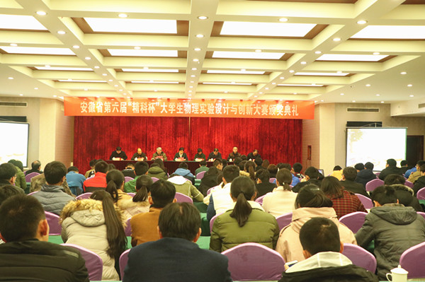 12月1日至3日,由安徽省物理学会主办,我校物理与电气工程学院具体承办的安徽省第六届“精科杯”大学生物理实验设计与创新大赛在学校稼先楼实验室举行。校党委委员、纪委书记胡腊香出席大赛颁奖典礼并讲话。本次大赛共有来自国防科技大学电子对抗学院(合肥 )、陆军炮兵防空兵学院、合肥工业大学、安徽大学、安徽师范大学、安徽农业大学、安徽工业大学、安徽理工大学等省内20所本科高校的共80名选手参加。