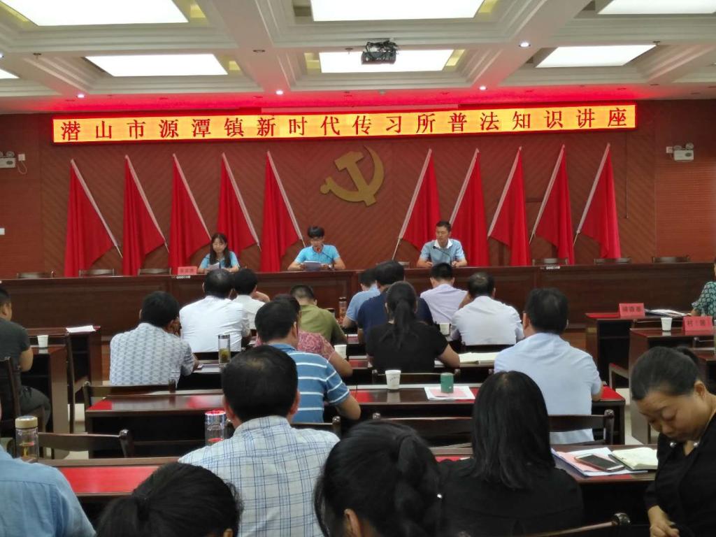 近日,为深入学习宣传贯彻习近平新时代中国特色社会主义思想和党的十九大精神中的法治思想,我院思政课主题学习实践成员赴潜山市源潭镇“新时代讲习所”开展大学生法制宣讲活动,为农村基层干部带来了一场高质量的普法知识讲座。镇党政班子成员、联系村镇干及全体村干参加活动。