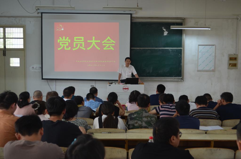 9月18日下午,学院党委书记江贵生在稼先楼一楼多媒体教室给全体党员宣讲习近平总书记“七一”重要讲话精神。