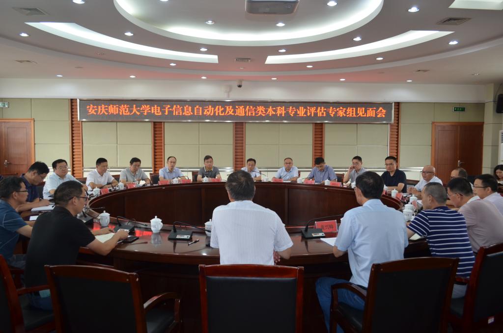 9月11日,受安徽省教育厅委托,由安徽工业大学王兵教授领衔的安庆师范大学电子信息自动化及通信类本科专业评估专家组,对我院光电信息科学与工程、微电子科学与工程、电子信息科学与技术、通信工程和自动化等5个本科专业进行现场考察评估。校长闵永新出席了专家见面会,副校长吴琼看望了专家组一行。校办公室、人事处、教务处、教学评建办公室、财务处、学生工作处、国有资产管理处等职能部门负责人、我院党政班子成员、系主任、科级干部和专业负责人参加了专家见面会和意见反馈会。