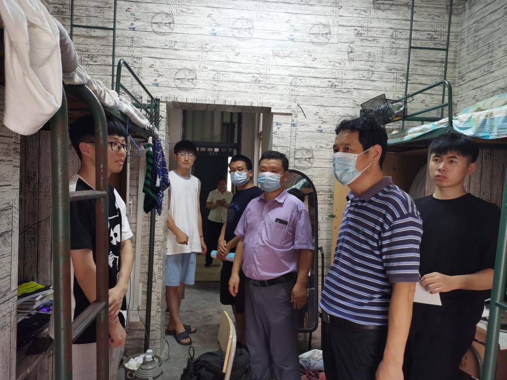 为确保秋季学期开学学生新冠肺炎疫情防控工作落到实处,及时了解学生返校后的思想动态和学习生活情况。8月26日下午,院党委书记江贵生、院党委副书记邹斌和专职辅导员深入学生宿舍走访调研。