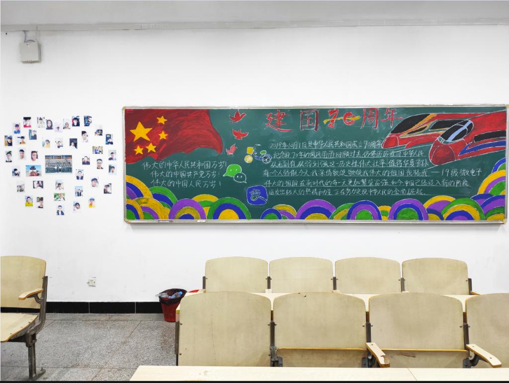 “室雅书香”教室评比从教室卫生、教室设计、板报设计及教室设计解说四个方面进行综合评比。在教室黑板报设计方面,很多班级都以建国七十周年作为主题。但他们的创意都别具风格,有的图案美观新颖,文字流畅优美;有的版面清晰,设计独特。每个班级的教室设计也都是别具一格,体现了班级同学的创新精神和团队意识。