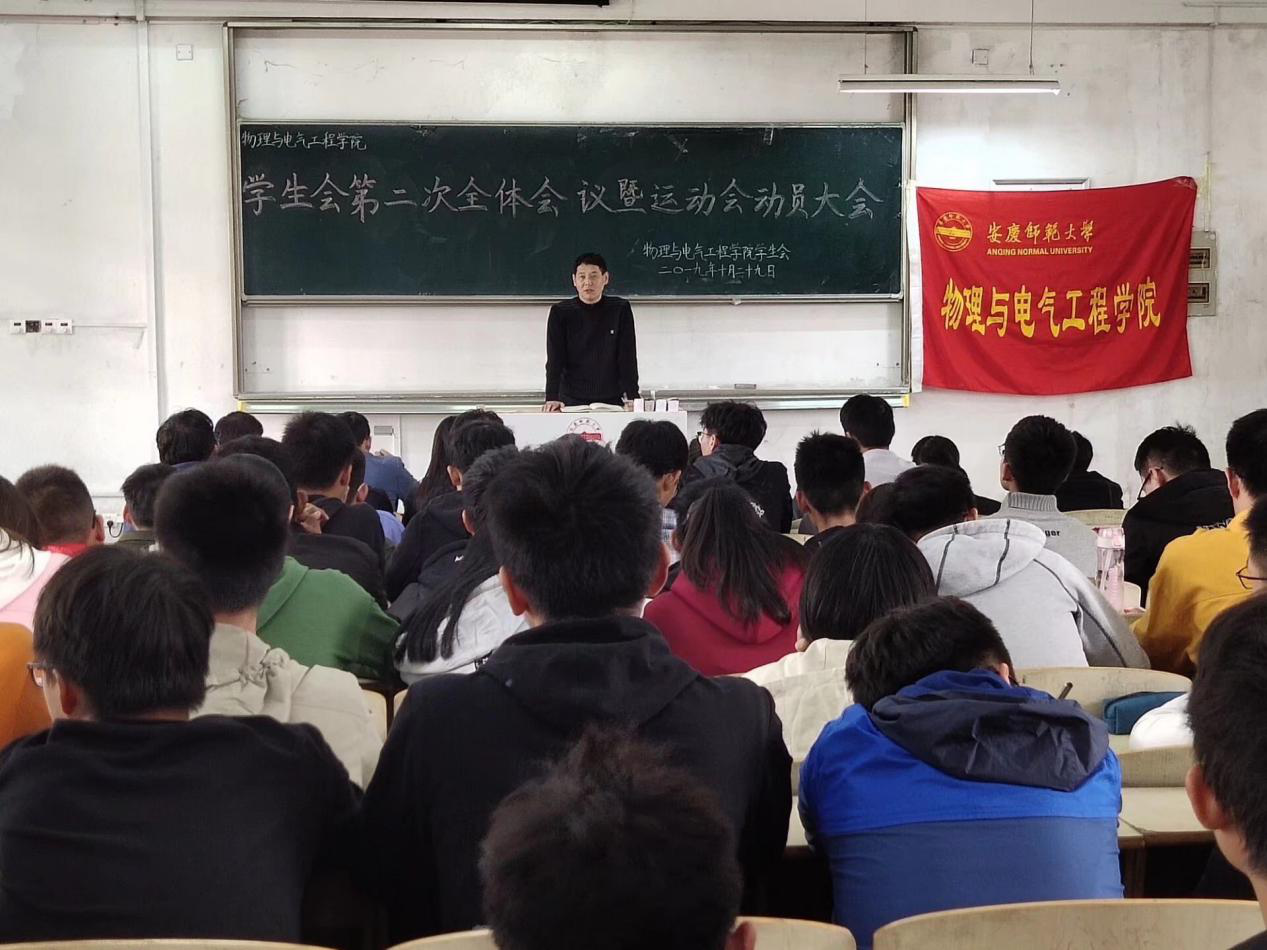 为增强我院运动员的凝聚力,激发同学们对运动会的热情。10月29日中午,我院学生会第二次全体会议暨运动会动员大会在稼先楼多一教室顺利举行,我院党委书记江贵生、党委秘书操龙德和学生会指导老师陈秋生参加了此次会议。