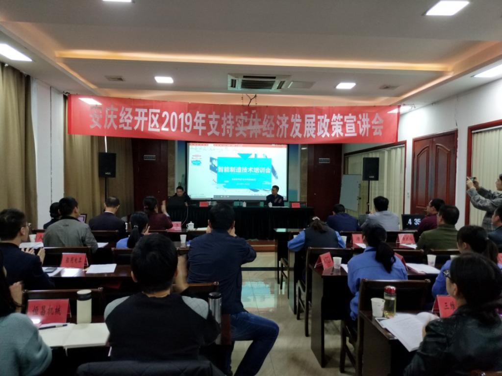 受安庆经济技术开发区产业与科技促进局邀请,11月8日,智能制造产业研究院参加安庆市2019年度支持实体经济发展系列政策宣讲暨智能制造技术培训会。我院副院长董甲东教授带领相关专业博士教授团队,对参会的经开区企业做了智能制造技术培训,开展了产学研项目推介和调研活动。会议由经开区产业与科技促进局副局长陈仕方主持,园区70余家工业企业代表,经开区经发局、产促局以及媒体记者共80余人参加会议。