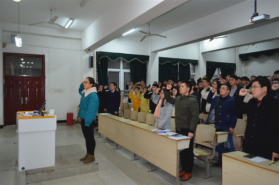 12月18日下午,我院党委在稼先楼一楼多媒体教室举行新党员入党宣誓仪式暨老党员重温入党誓词。学院党委书记江贵生主持仪式并讲话,学院全体党员参加了仪式。