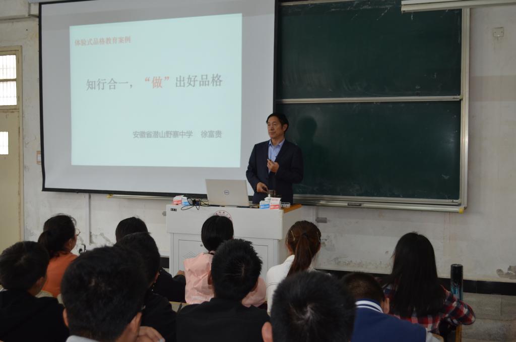 报告人简介:徐富贵,从教38年;任安徽省潜山野寨中学副校长,中学高级教师;2018年主持的“德育微行动提升学生的品格的探索和实践”荣获安徽省教学成果一等奖;市政府特殊津贴享受者;多次担任新华爱基会育珠论坛讲师。