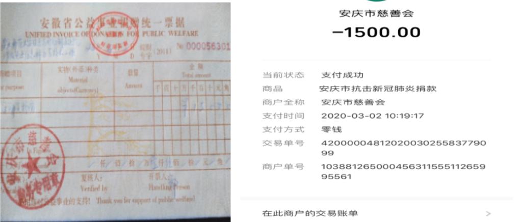 近日,为抗击新型冠状病毒感染肺炎疫情,我院2019级电子信息科学技术(2)班通过网络在线的方式在班级范围内发起了抗“疫”募捐活动,仅仅3小时就募捐到爱心款1500元,用于助力安庆当地的疫情防控。