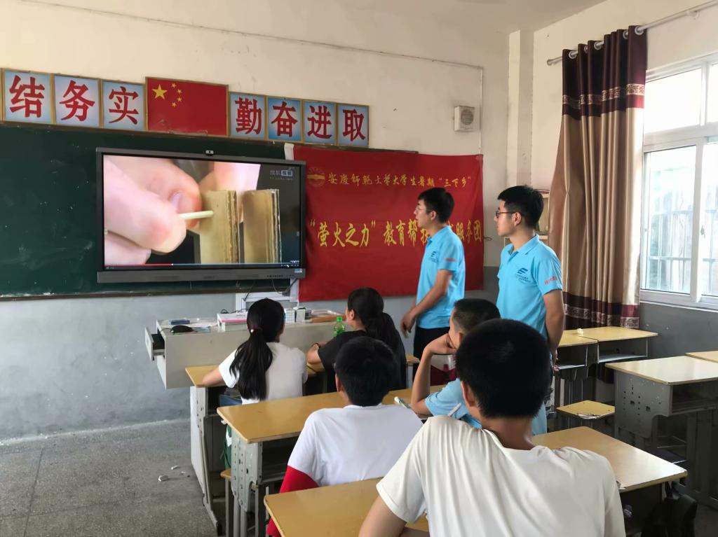 秉承“敬敷世范,勤学笃行”的校训精神,7月19日至25日,在我院党委的高度重视下,学院团总支组织“萤火之力”暑期实践服务团队在潜山县源潭镇双峰初级中学开展了为期一周的教育帮扶实践活动。在这里,他们用知识和激情将孩子们的梦想点燃,将希望和快乐进行传递。