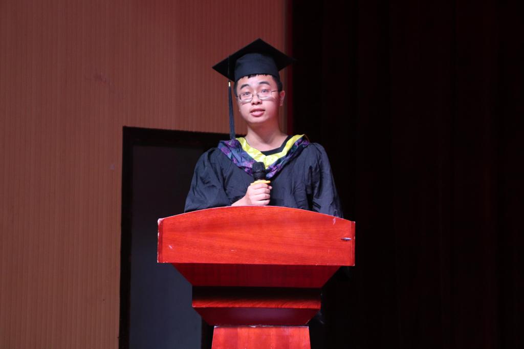 教师代表马业万满怀真挚,谆谆教诲令人动容,为毕业生们阐释了深层的人生哲理。他希望毕业生们踏实做人,认真做事,做有理想、有追求、有抱负的年轻人。校友代表查小进分享了自己的十年就业经历,总结了宝贵的经验,给毕业生们提供了有益的启示。他表示,人生路上必须不断提升自己,为成为更好的自己而奋斗。