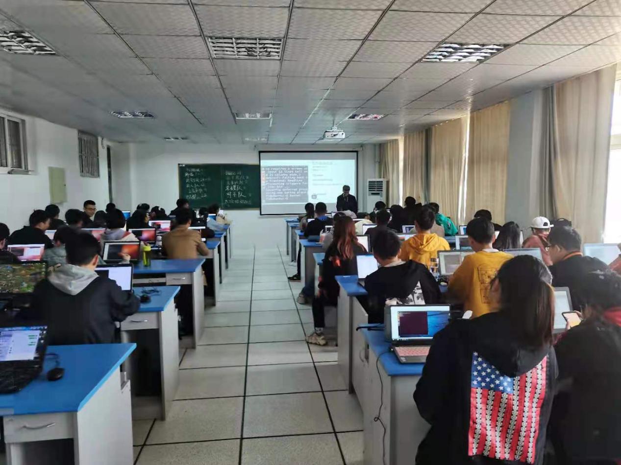 在实训开营仪式上,首先,华清远见项目工程师详细阐述了如何进行企业工程项目开发全流程环节的模拟,由浅入深、循序渐进,从理论到实践,组织教学情境和教学内容。然后,班级学员分成若干个项目开发小组,选出组长,开展智能语音系统项目和虚拟仿真项目的编程开发,锻炼同学们的项目开发能力和实践动手能力。电子信息科学与技术专业负责人纪娟娟博士和金中朝老师全程参与了实训项目的开展,保证现场教学和实战锻炼的顺利进行。
