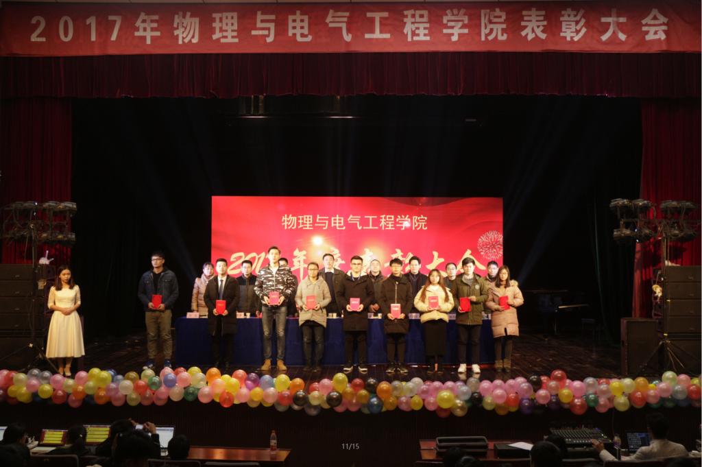 江巨浪总结回顾了我院2017年的学科建设发展、教学与科研情况以及学生管理与制度建设等方面的工作,对2018年的工作提出了殷切希望,希望在新的一年里,获奖集体和先进个人充分发挥模范带头作用,再接再厉,争先创优,带领广大同学共同进步,为物电学院创造更加美好的明天。(徐辉)