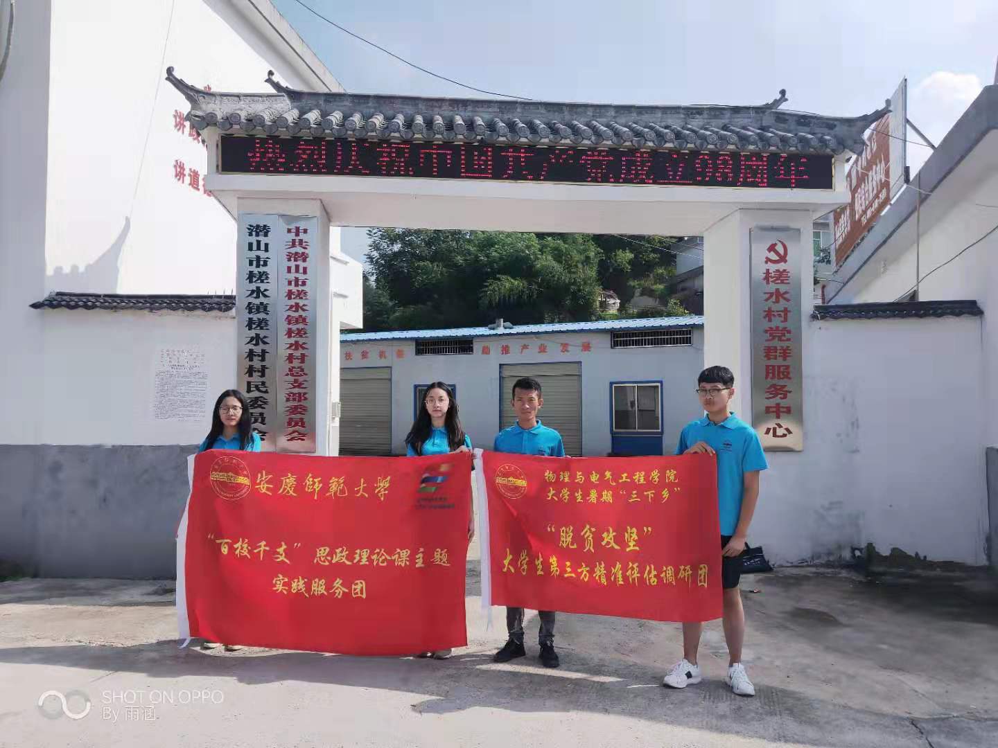 为进一步发挥出大学生第三评估在脱贫攻坚中的作用,提高第三方评估的客观精准度,推动精准扶贫、精准脱贫,7月10日至7月12日,我院王若琴、褚颖、严开全和郑文强四位大学生党员组成的暑期调研团队带着调研课题《脱贫攻坚大学生第三方精准评估影响因素及对策研究》前往潜山市槎水村开展专题调研活动。