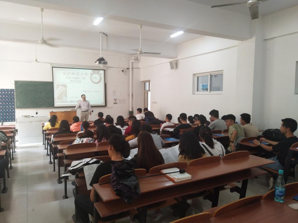 9月23日-24日,副院长董甲东带队先后赴合肥师范学院、新华学院、巢湖学院等高校开展研究生招生宣传,受到所到学校招生对口学院的热烈欢迎与积极响应。宣讲会上,董甲东教授首先介绍了安庆师范大学和物理与电气工程学院概况、师资队伍、科研成果及水平、招生专业等,并与在场师生进行了座谈和深入交流。科研(研究生)秘书解读了2020年信息与通信工程招生考试科目、复试课程以及学校奖励体系,并在宣讲现场发放相关宣传资料。宣讲会现场学生踊跃提问,气氛热烈。