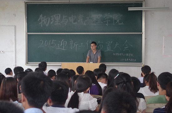 为做好2015年学院迎新工作,确保新生顺利入学,9月9日,我院召开迎新工作布置大会,迎新工作全面启动。院团总支副书记江伟、学生办公室负责人蒋立永、团总支负责人程培培及新生班辅导员牛贝等老师出席了会议。辅导员助理、院学生会及学生公寓党支部全体迎新人员参加了会议。