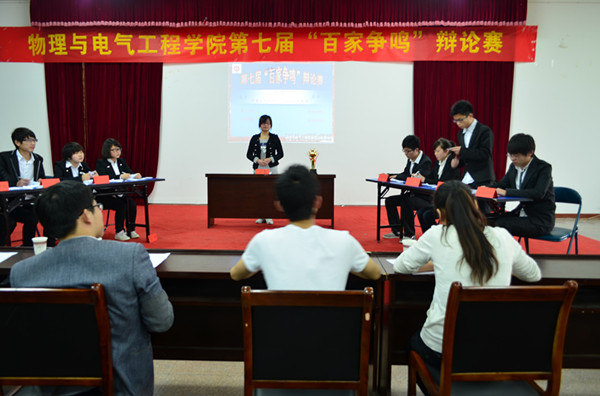历时一个月的第七届“百家争鸣杯”辩论赛圆满地落下了帷幕。辩论赛的举办不仅丰富了同学们的业余文化生活,培养了当代大学生的团结、竞争、进取等优良品质,而且引发了大学生对社会问题的关注和思考。(学生通讯员 隗强)