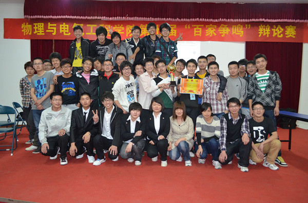 经过评委紧张的评比,最终11级机械设计制造及其自动化(2)班获得了本届“百家争鸣杯”辩论赛的桂冠。