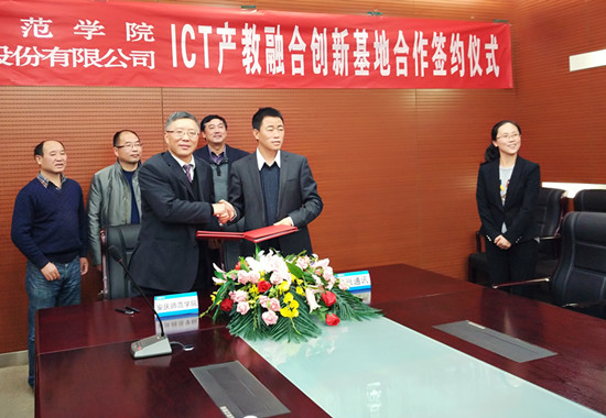 11月18日,我校与中兴通讯股份有限公司《教育部-中兴通讯ICT(信息、通信和技术)产教融合创新基地合作协议》签约仪式在中兴通讯股份有限公司北京分部举行,闵永新校长与中兴通讯教育合作中心总经理姜善永代表双方签署了协议。我校物理与电气工程学院院长张杰、教务处处长张元广和国有资产管理处处长金根山出席了签约仪式。