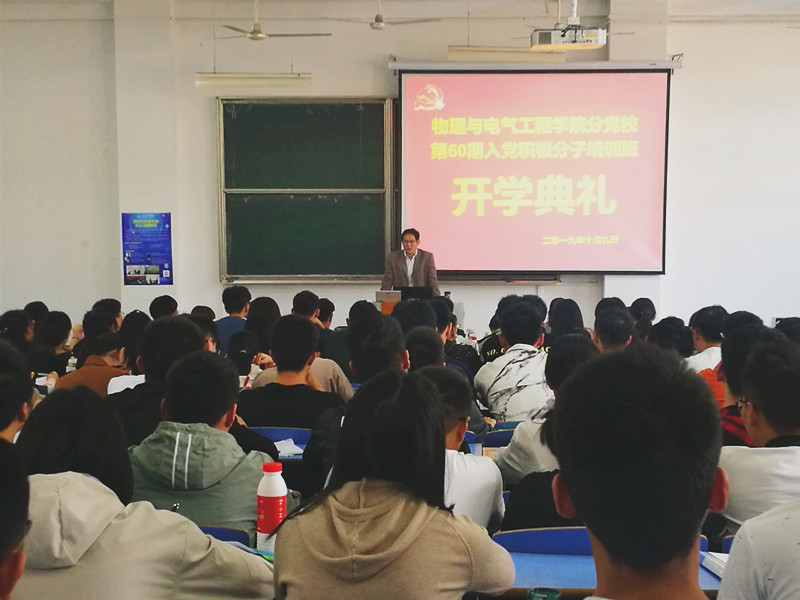 开学典礼上,分党校培训班班主任操龙德同志宣读了本期培训班教学安排和培训班学规。2018级物理学专业万仙同学作为学员代表进行了表态发言。
