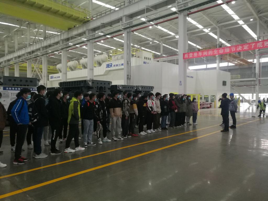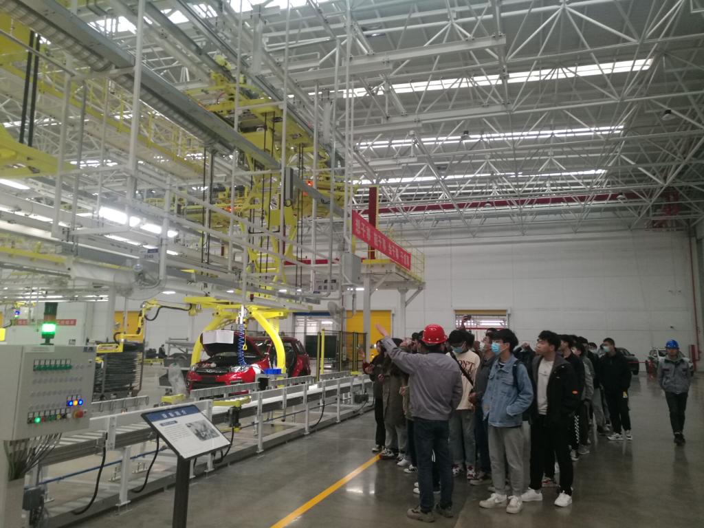 专业实践活动分成两组分别进行,每组学生在各工序段工程师的讲解下详细的学习了汽车生产中的冲压、焊接、涂装、总装和检测等工艺流程。在冲压工艺段,同学们看到了一批批汽车钢板变成了形状结构复杂的车身零部件;在焊接工艺段,机械手将各种各样的零部件在这里焊接到一起形成车身;在涂装工艺段,组装完成的车身被吊装到喷漆车间,先进行电泳防锈处理,然后进行喷漆涂装,工艺过程均由机器人完成;在总装工艺段,同学们看到了车身、底盘和内饰等各个部分组装到一起,形成了整车;最后,在汽车检测阶段,对即将出产的汽车进行全面的性能检查,确保各项指标合格。