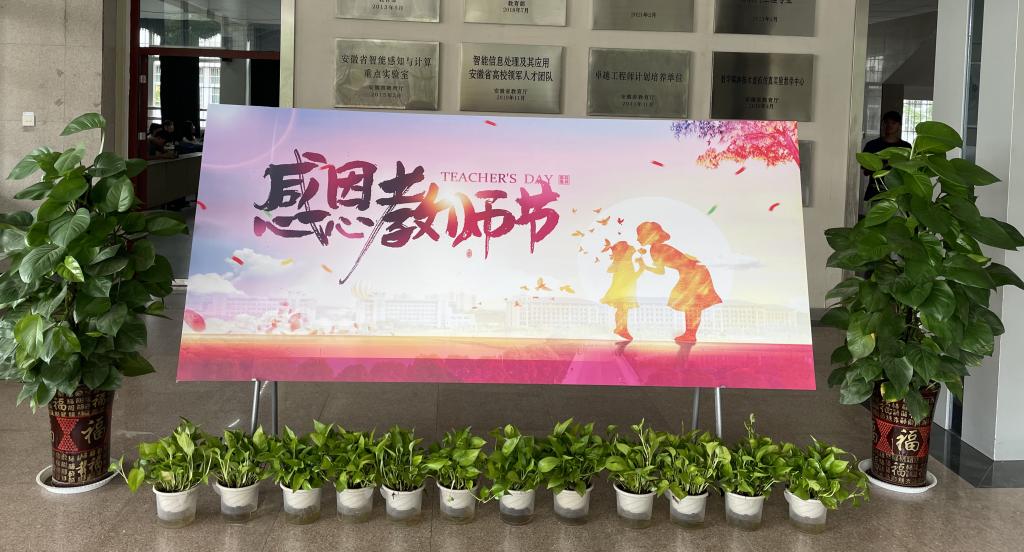 朵朵鲜花承载对老师们的感恩之心,一字一句流露对老师的尊敬之意。9月10日,学院团委在稼先楼大厅摆放了祝福语。各班级团支部组织开展了形式多样、简朴真挚的教师节感恩系列活动。