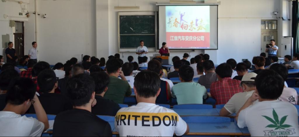 随后,党委副书记关德军带领各企业负责人、学院专业负责老师、各班辅导员在现场进行组织宣传, 2022届6个专业580余毕业生参加了现场宣讲会。安徽江淮汽车集团股份有限公司安庆分公司、安徽环新集团、安庆楚航科技电子有限公司、江淮华霆(安庆)电池系统有限公司、安徽腾创智能科技有限公司等10家企业分别就实习计划、实习安排、实习环境和岗位职责等内容进行了介绍,并就职业成长规划、实习要求与学生进行现场交流。