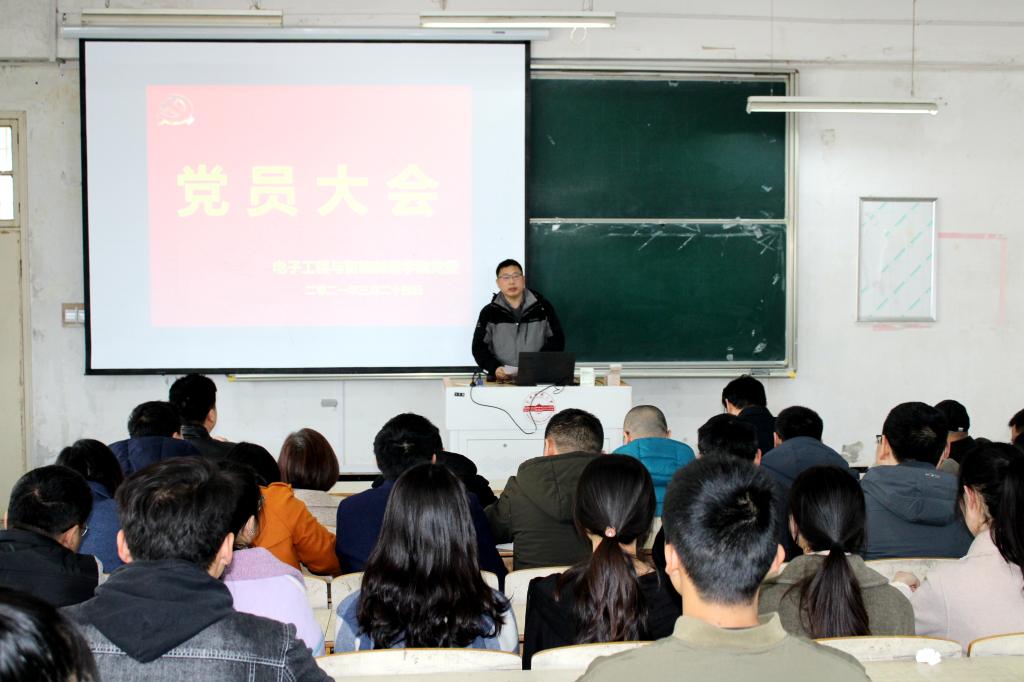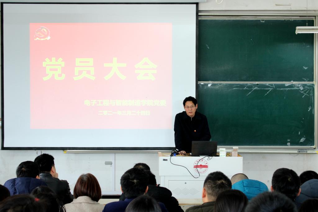 3月24日下午,我院党委在稼先楼二楼多媒体教室召开全体党员大会,深入学习贯彻习近平总书记在党史学习教育动员大会上的重要讲话精神,传达学习省委和校党委党史学习教育暨新一轮深化“三个以案”警示教育动员部署会议精神,对学院党史学习教育暨开展新一轮深化“三个以案”警示教育进行部署安排。学院党委书记江贵生作动员讲话,会议由学院党委副书记关德军主持。
