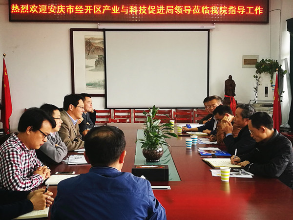 4月26日下午,安庆市经开区产业与科技促进局、人社局、教育局等单位负责同志来我院洽谈产学研合作事宜。