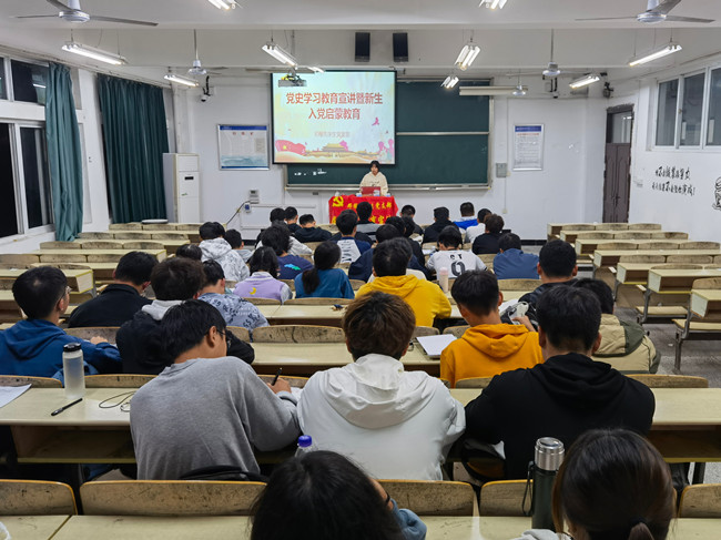 10名党史学习教育宣讲团成员利用晚自习时间深入到新生班级开展党史宣讲和入党启蒙教育。活动分为二个部分:第一部分,宣讲“两弹元勋”邓稼先的生平事迹。结合微视频故事播放,宣讲团将邓稼先的爱国精神、科学精神和奉献精神诠释得淋漓尽致。“邓稼先1948年到美国普渡大学留学,只用了一年零九个月的时间就获得博士学位,获得博士学位以后的第九天,他就踏上了回国的旅程。他为什么回来?新中国成立了,他要回来建设新中国。过去无数像邓稼先的仁人志士为实现国家富强和民族复兴奉献出了自己的一切。今天我们要接好时代发展的‘接力棒’,继承先辈的红色基因,立志成才,为实现中华民族的伟大复兴而努力奋斗……”,宣讲团成员吴晓琪进行着激昂地宣讲。邓稼先的先进事迹使在场的新生备受感动和鼓舞,纷纷表示一定要继承邓稼先精神,立足专业,勇于创新,勤奋实践,练好本领,用科技知识报效祖国。第二部分,宣讲团成员开展新生入党启蒙教育,介绍中国共产党的基本知识,详细讲解入党的标准、条件及基本程序,强调端正入党动机的重要性,并结合自身的入党经历鼓励同学们坚定理想信念,刻苦努力学习,时刻以党员的标准来严格要求自己,用实际行动践行党的宗旨,积极向党组织靠拢。“通过这一次的入党启蒙教育,我充分了解到了党员的基本条件是什么,入党有哪些基本程序和流程,如何撰写党员发展的相关材料,等等。我今后一定要加强政治学习,不断地充实提升自己,积极地向党组织靠拢,不仅在组织上入党,更要在思想上入党。”2021级电子信息大类5班马梦娇同学说道。