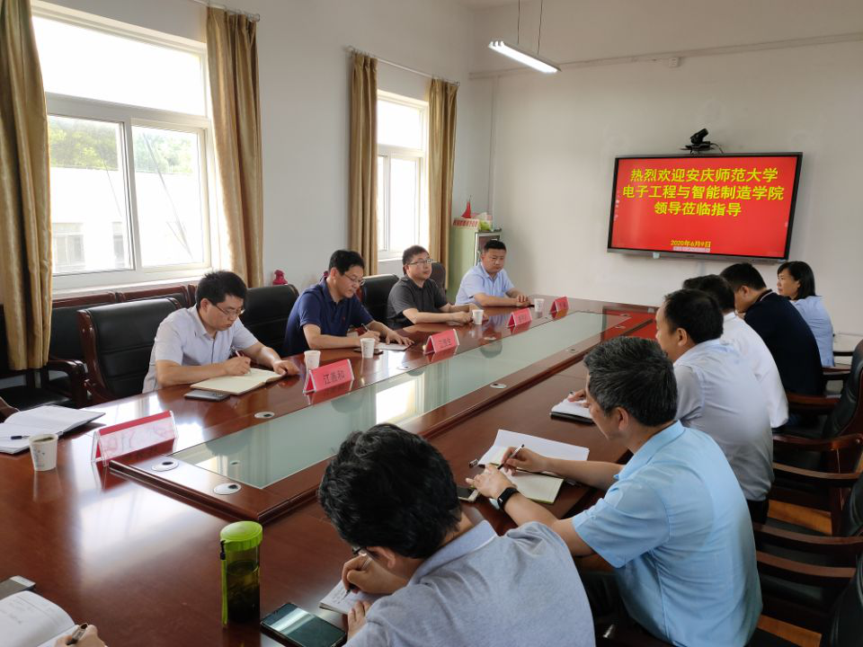 开俊对调研组一行的到来表示热烈欢迎,并简要介绍了学校概况、专业设置、硬件设备、教学与实习实训、师资及专业规划等基本情况。江贵生对安徽理工学校的热情接待表示感谢,并向与会人员介绍了电子工程与智能制造学院基本情况,希望双方以后能多加强沟通交流,实现合作共赢,共同促进发展。